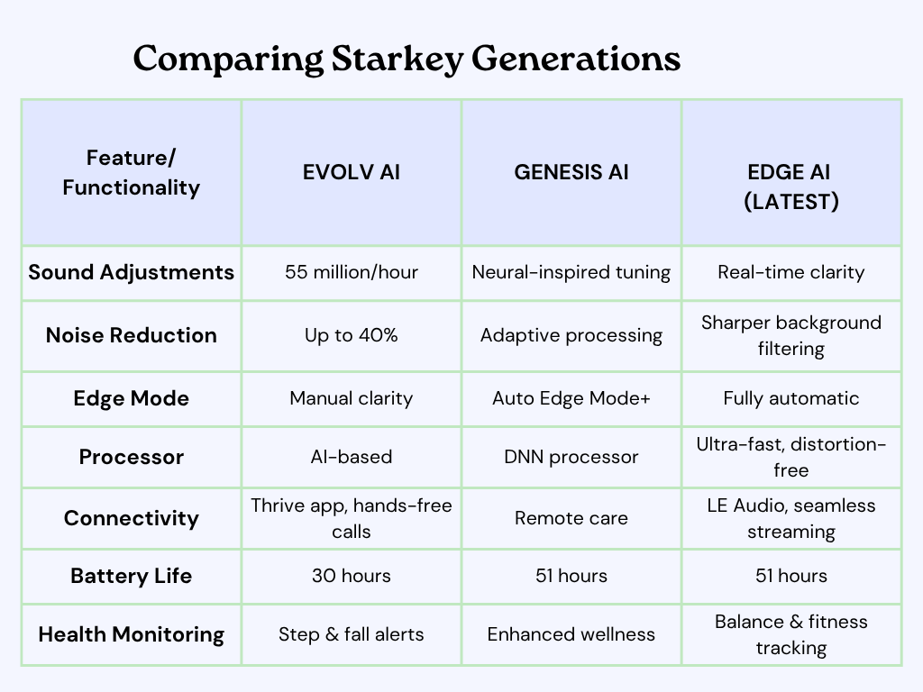 From Evolv AI to Genesis AI and now the advanced Starkey Edge AI, Starkey’s innovation journey represents continuous progress toward clearer, more natural, and intelligent hearing.